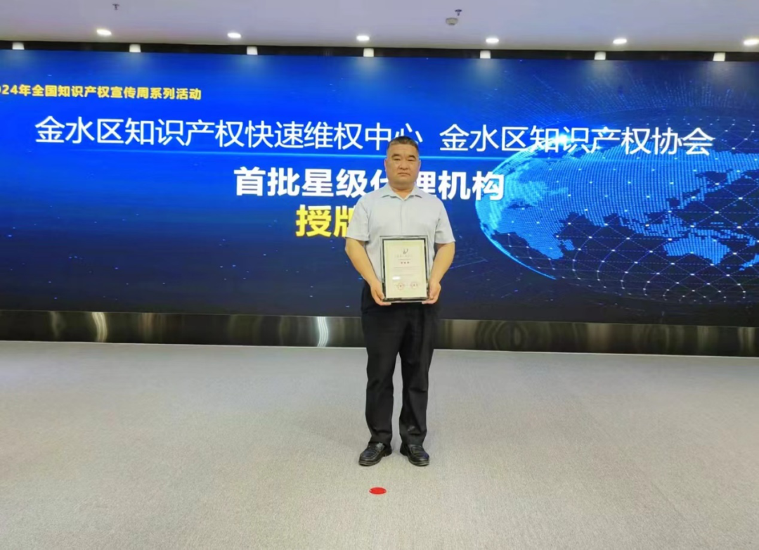 星级外观设计专利代理机构由金水区知识产权快速维权中心联合金水区知识产权协会依据《星级代理机构评价办法》评定,旨在选树先进,激励各家服务机构不断提升服务质量。今年是首次评定,原则上各代理机构从一星级起评。根据评价办法特别规定,河南豫龙律师事务所在2023年荣获金水区知识产权协会年度优秀会员单位、并在外观设计专利申请合格率、授权数量上成绩突出,经金水区知识产权协会推荐和快速维权中心评估,起步评定为三星级专利代理机构。